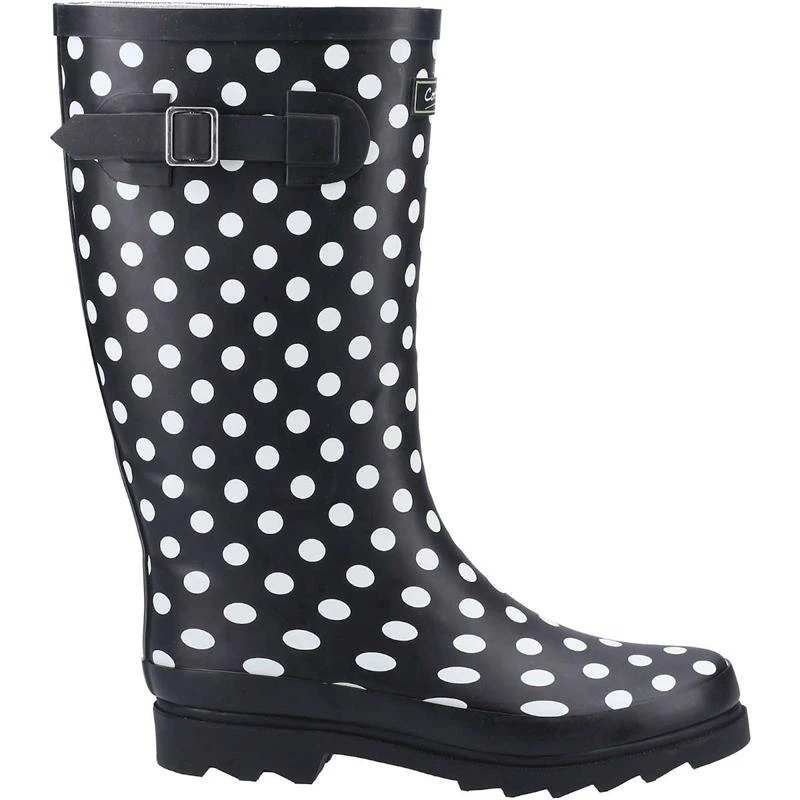 Ladies Chilson Wellington stands out from the crowd with its quirky design and high shine finish, fully waterproof with gusset at the top and a memory foam footbed for a comfortable fit.
