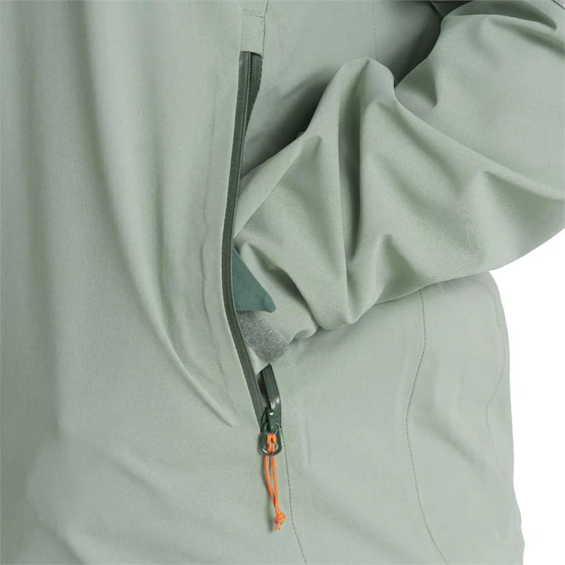 Recycled polyester stretch with AquaDry Membrane & EcoShield DWR, polyester stretch mesh & recycled polyester taffeta lining. Part recycled zip tape to inner pocket.