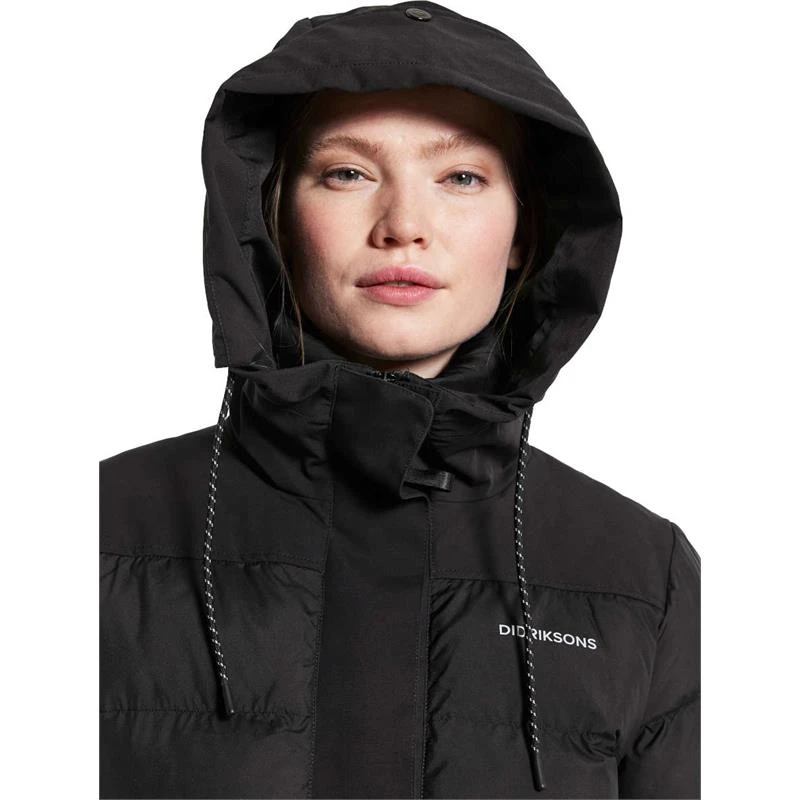It is made of a soft polyester twill with a matte surface and a recycled nylon fabric with a matte look. Padded collar and a decorative hood end with decorative snap buttons and a heavy reflective drawstring. The lining has been dyed using Solution Dye, a dye technique that saves up to 80% water compared to conventionally dyed polyester/polyamide fabric. PFC-free water-repellent finish.