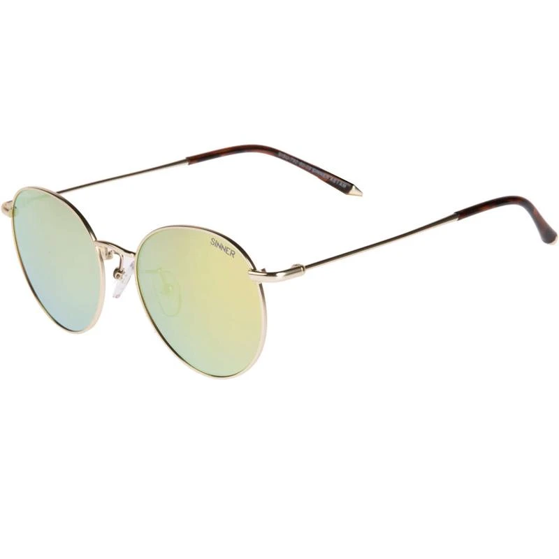 The SINNER HERMON sunglasses have a fashionable round, matt gold-coloured metal frame with a luxurious finish at the temples tips. The sunglasses have polycarbonate, gold-coloured oil lenses (category 3), which offer 100% UV protection. The sunglasses are nickel free, the screws in the frame are made of stainless steel.