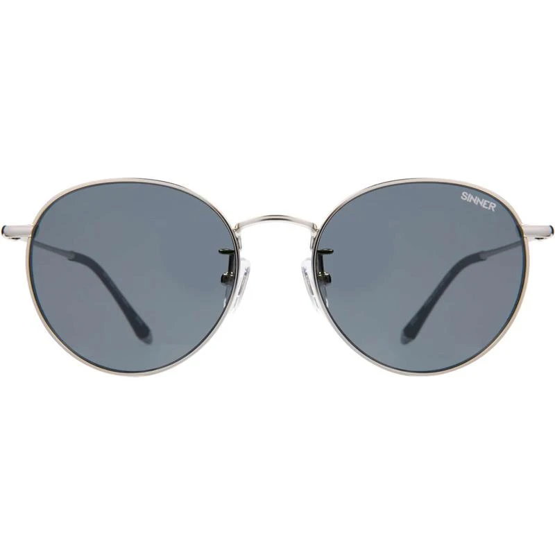 The SINNER HERMON sunglasses have a fashionable round, matt silver metal frame with a luxurious finish at the temples tips. The sunglasses have polycarbonate, smoke mirror lenses (category 3), which offer 100% UV protection. The sunglasses are nickel free, the screws in the frame are made of stainless steel.