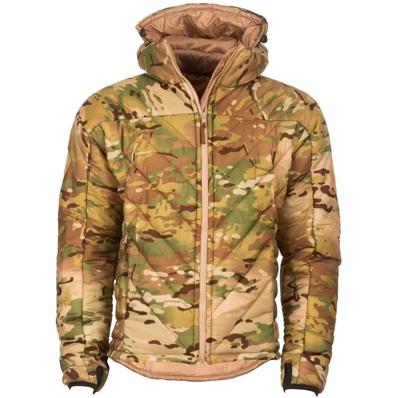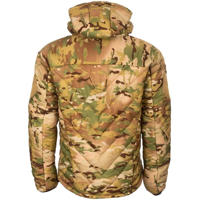 Tailored to fit the contours of your body, and a high neck design that keeps out the draughts. The Softie Jacket 9 is designed for the winter months with a permanent, adjustable, insulated hood for extra warmth around the head, neck and face. You’ll be comfortable right down to -10°C. It comes in our traditional Olive, Military Black and Multicam camouflage colours, which also feature Velcro patches on the arm for military use.